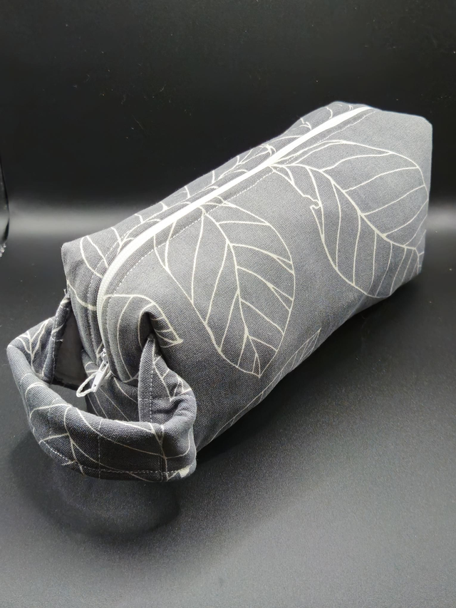 Nécessaire de toilette souple confectionné à la main, dimensions L23cm x l7cm x H11cm.