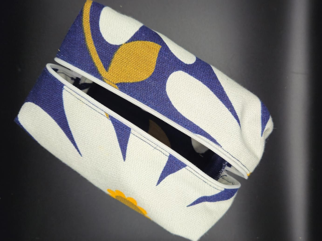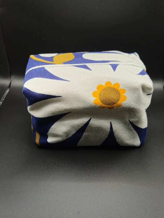 Nécessaire de toilette souple confectionné à la main, dimensions L18cm x l13cm x H12cm.